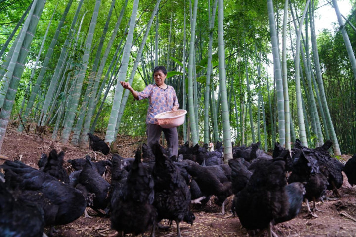 图:建行贵州省分行贷款支持桐梓县花秋青山土鸡养殖场,成功带动发展林下养殖。